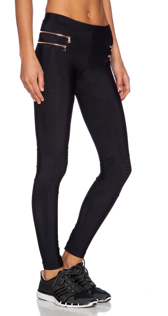 Subtly does it in these rose gold zipper ‘Moto” leggings from Blue Life’s Fit Collection! A staple foundation for your ‘pic n’ mix’ wardrobe accessories -these pants are as versatile as they come! To anyone outside the gym or your yoga class, you’re sporting flattering black jeans with a zipper-detail and high-waisted sophistication.