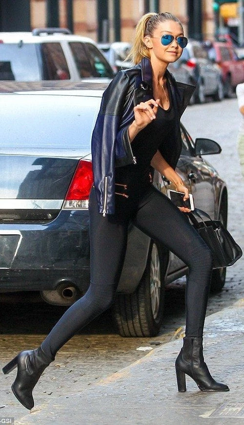 Fit: Form-fitting, exposed zipper detailing, stretch-material