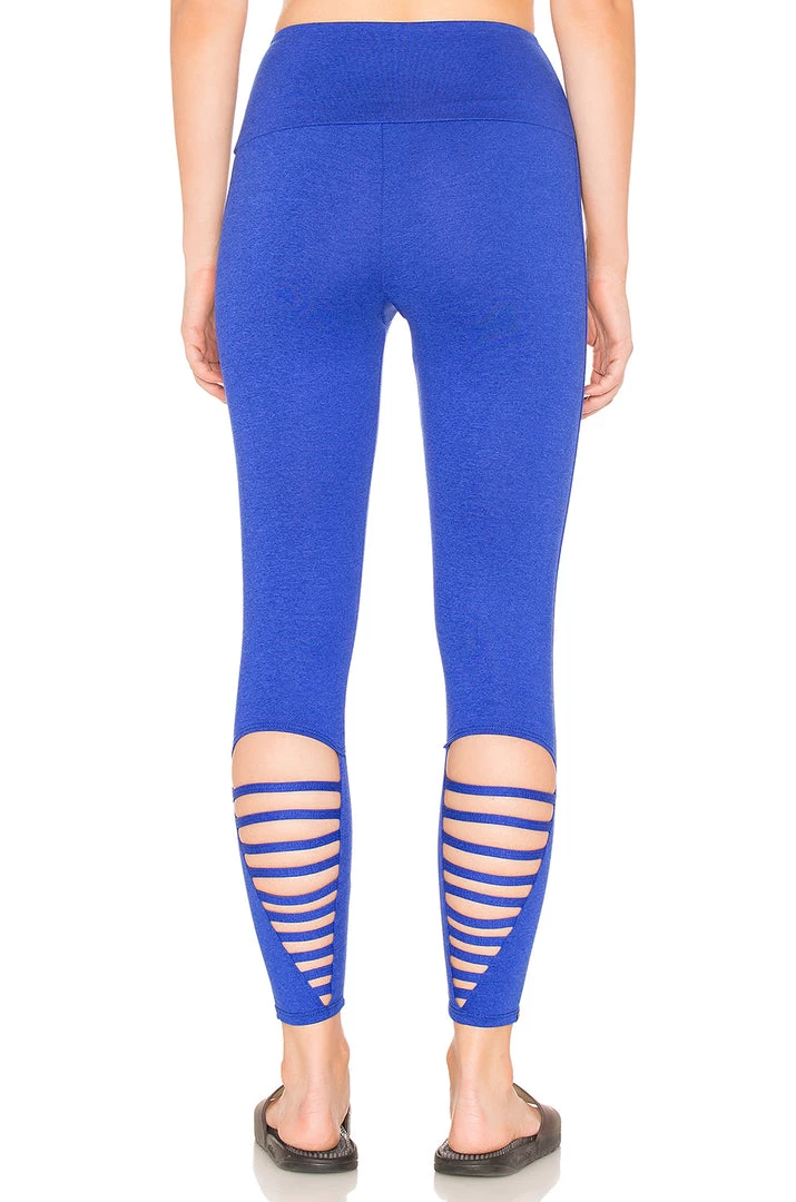 Elevate your practice with ankle-length leggings featuring a comfortable elastic waist and laddered cutouts in back for style and breathability.