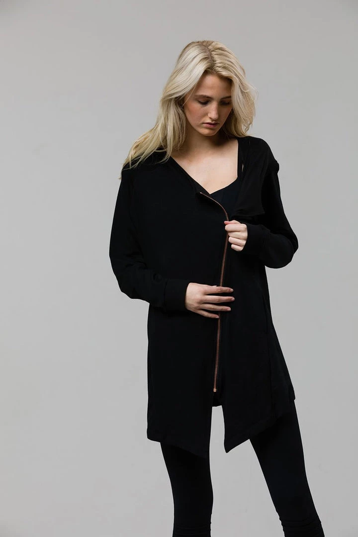 Onzie’s Wrap Jacket is a perfectly easy throw on for any outfit. It features stunning details including a rose gold zipper, comfy hood and pleated back design, and is fully lined.