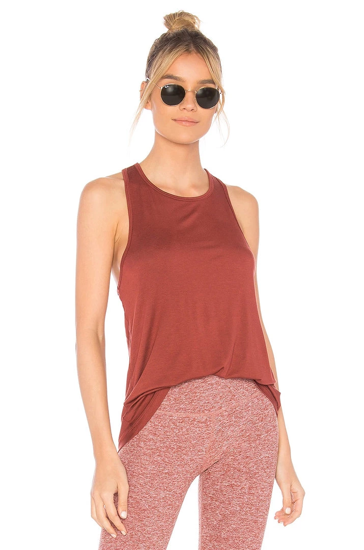 Wear it knotted to stay put during your down dog pose in this Cross-Bank tank by Beyond Yoga.