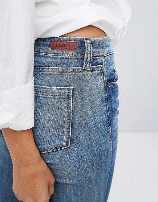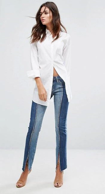 Take a walk on the wild side in Blanc’s Miss Matched Skinny Jean. These amazing denim pants feature a low rise waist, zip fly, contrast leg panels, exposed seams, and front splits. The skinny fit jean is unique and perfect for any occasion.