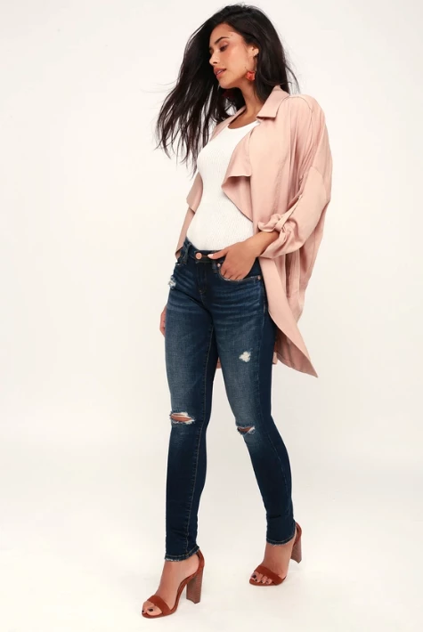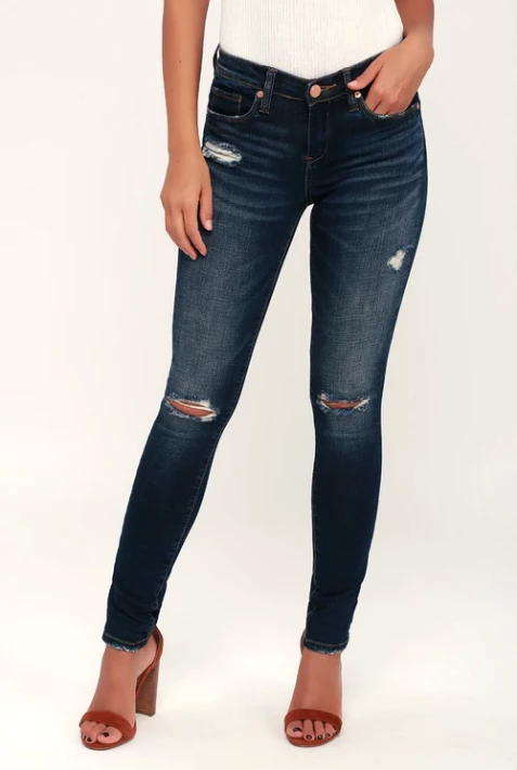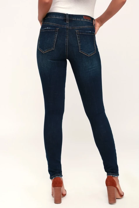 Soon to be your new staple, the Blank NYC The Reade Dark Wash Distressed Skinny Jeans are here to stay! Dark wash, stretch denim features a mid-rise waist, five pocket cut, belt loops, branded top button, and zip fly. Skinny pant legs have fading, whiskering, and distressing throughout. Distressed hems.