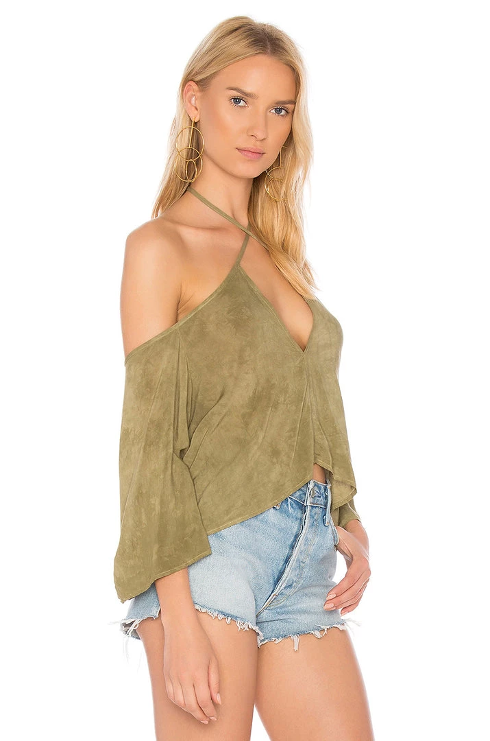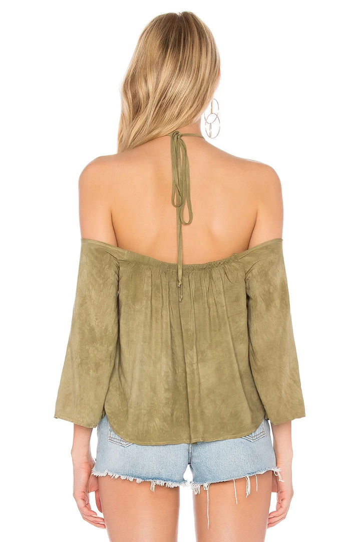 The Blue Life Sophia Top features a sexy keyhole front with self tie neck and open shoulders. The flowey and flouncey fit is the perfect breezy top for summer.
