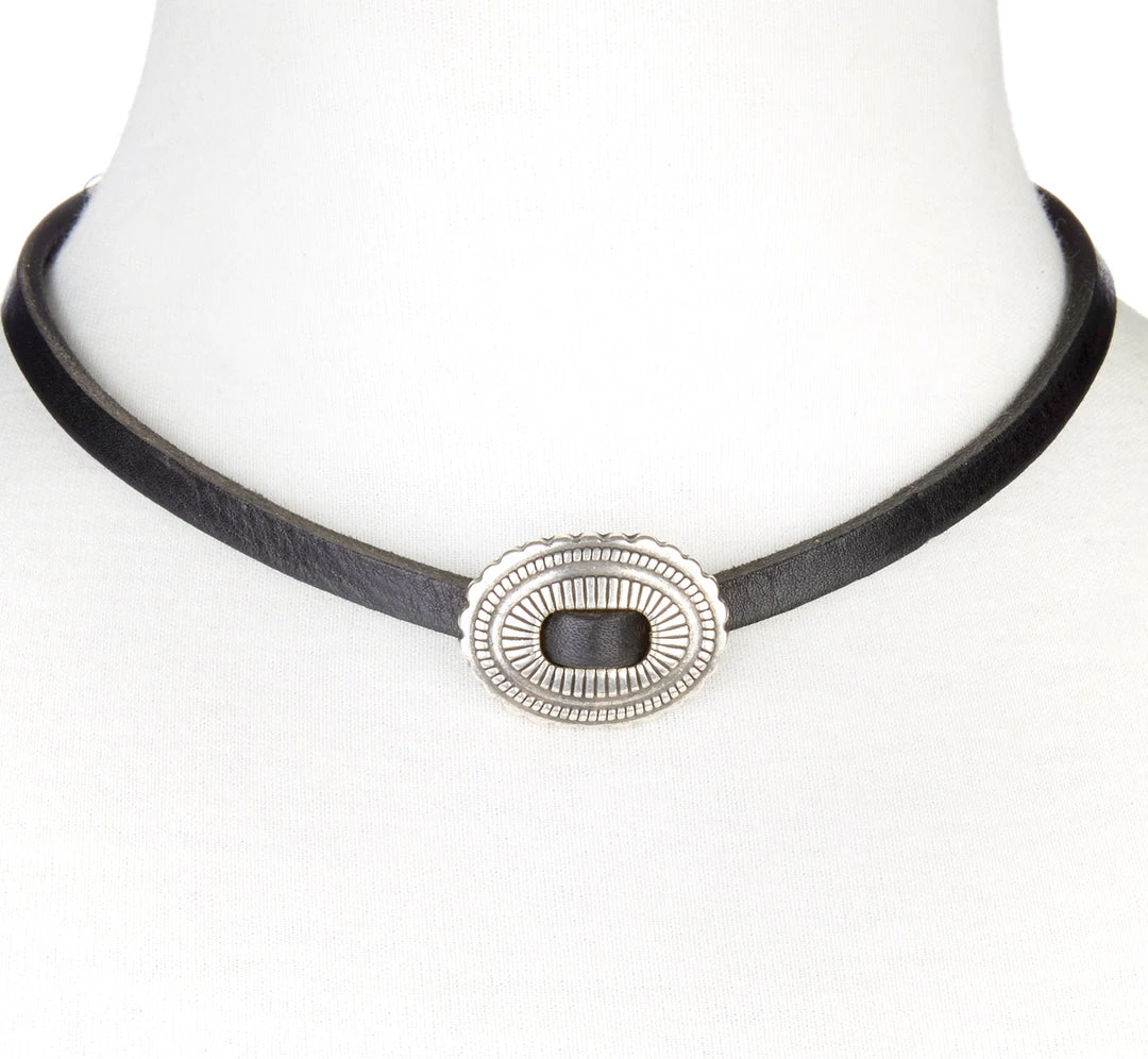 From the runways to the streets, the choker necklace is the hottest accessory, and Brave Leathers Fantiv Choker is a must have! Fantiv features soft Italian leather with western inspired concho accent.