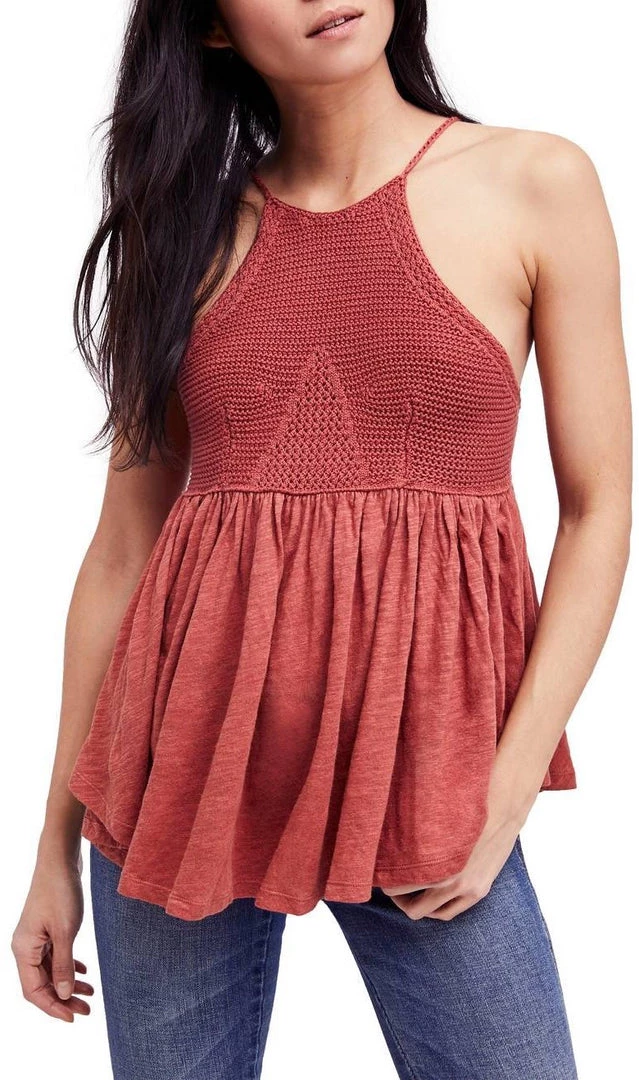 Channel the easy, carefree feeling of summertime in this light and flowy tank knit in a slubbed cotton blend and finished with a strappy back.