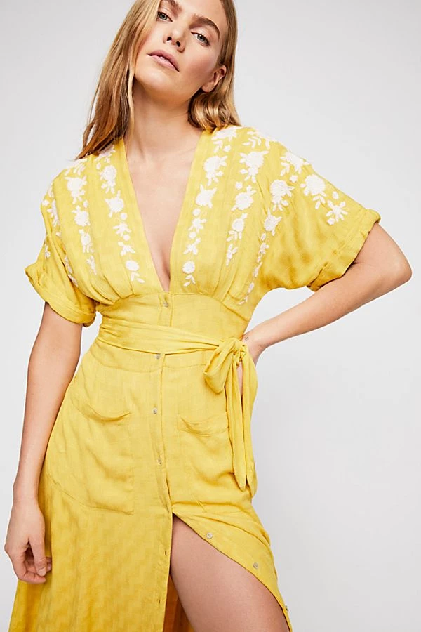 Nothing says Spring & Summer vibes quite like Free People’s Love To Love Dress. This gorgeous boho inspired midi dress features floral embroidery, a v-neckline, button closure down the front, adjustable waist tie, and front slip pockets. Obsessed!