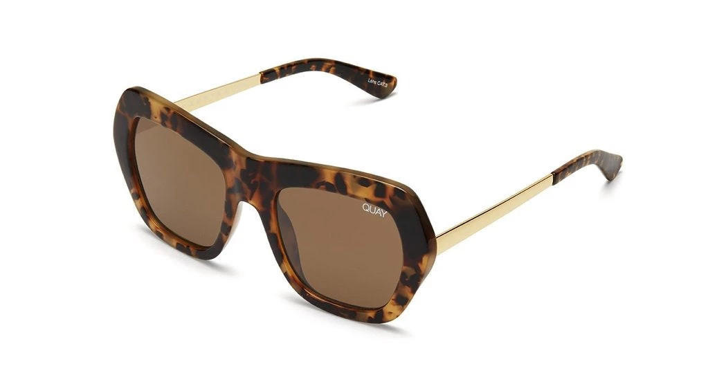Feel the COMMON LOVE. These sunnies are sure to charm with their unique geometric shape & contrasting gold arms. Go bold in shiny tortoise with brown lenses.