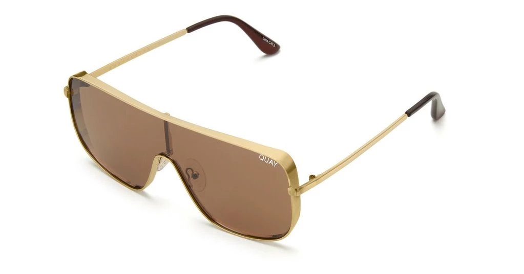 Always bring the drama, but stay UNBOTHERED. A space-age shield with contrasting rounded metal frames & non-reflective brown lenses hide your face, but draw all the attention to you. Metal arms give these sunnies an ultra-luxe feel.