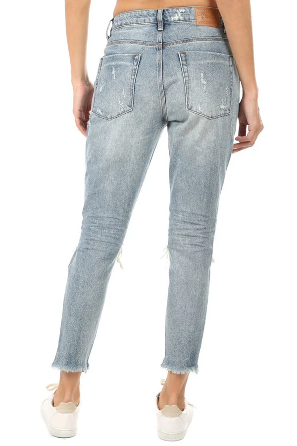 A perfect vintage wash enhances the well-weathered aesthetic of these vintage inspired high rise jeans. Distressing and a relaxed fit complete the look. – Color: Storm Buoy – 100% Cotton – Imported – Style #: OT20963 – Machine Wash Cold * Model is 5’9 wearing size 28