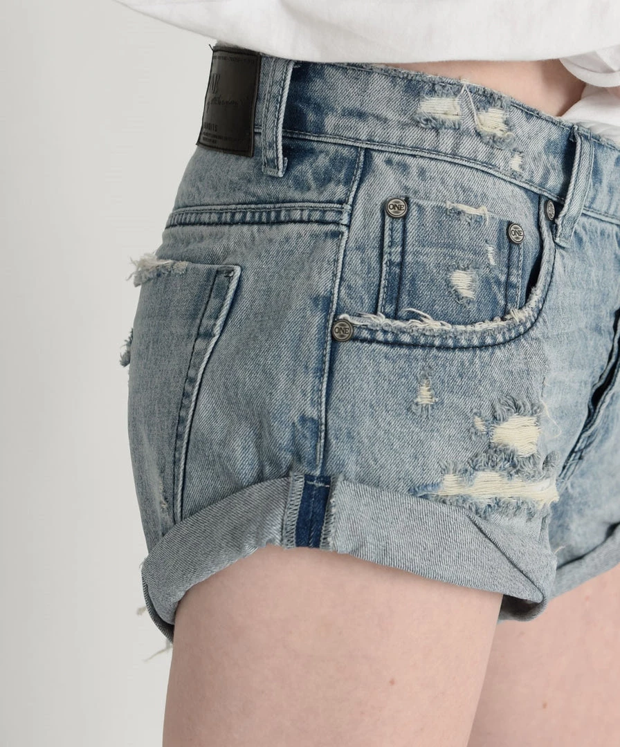Bandits are our cult denim short. They are a low-waist, relaxed fit denim short. Classic 5 pocket style. Back leg panel scoops down slightly at mid thigh. Raw double turned twisted cuff. Made from rigid denim and with our signature bird button closure.