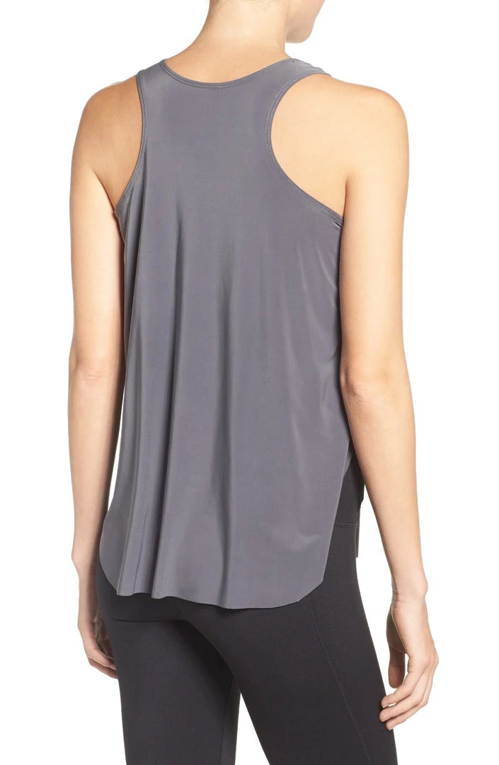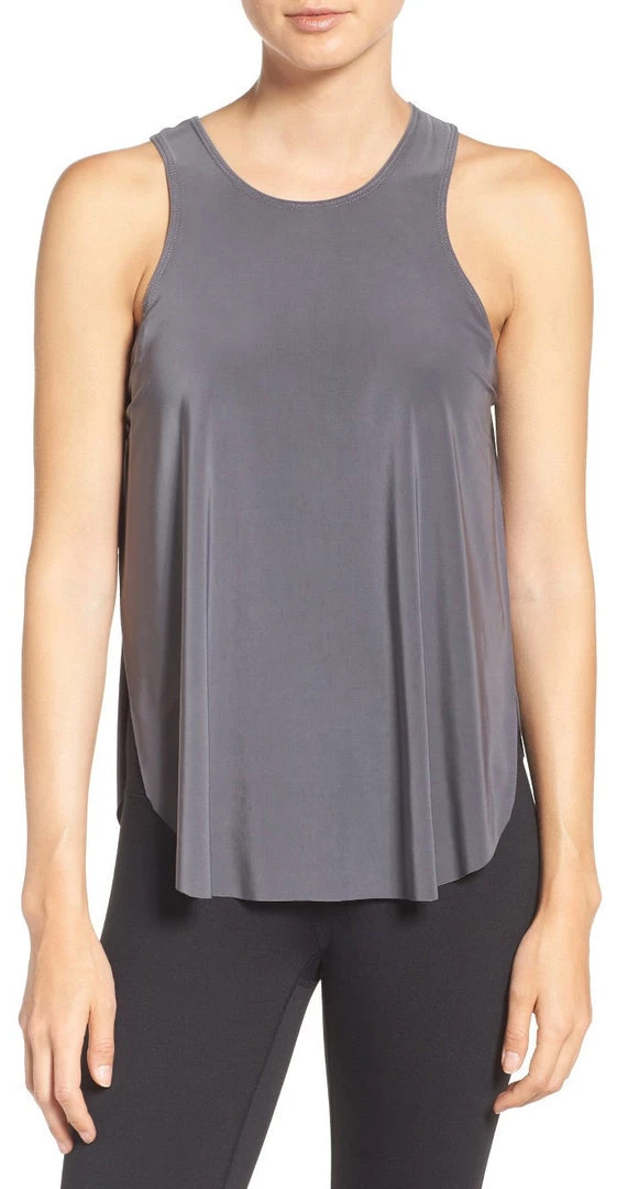 The ultimate combination of comfort, style and functionality, the Molly Tank is very versatile. Made from a quick drying lightweight spandex/jersey blend, you can wear it in the hot room over one of our Bra Tops or as a cover up piece after class. Features a higher neck line, racer back design and flyaway sides.