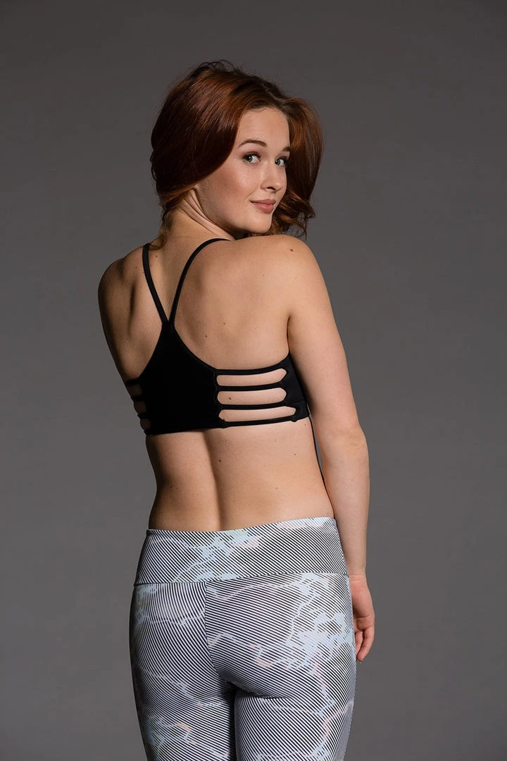 Flow through your toughest Vinyasa, dive deep into your practice, or simply meander through the streets on a warm day – the Onzie Vinyasa Bra Black Top will comfortably bear you through. Simple scoop neckline in the from makes for a versatile and stretchy fit to suit all.