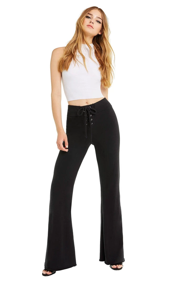 The Jones Pant is a wide leg pant with front lace up closure. Made in a Cotton Sherpa fabric.