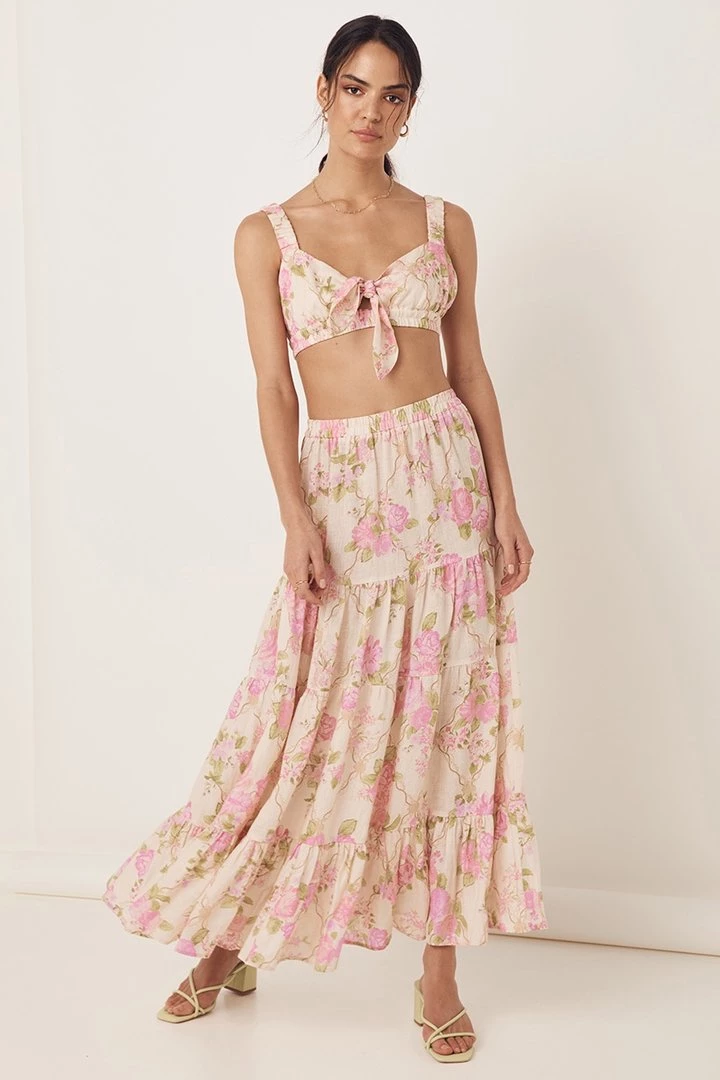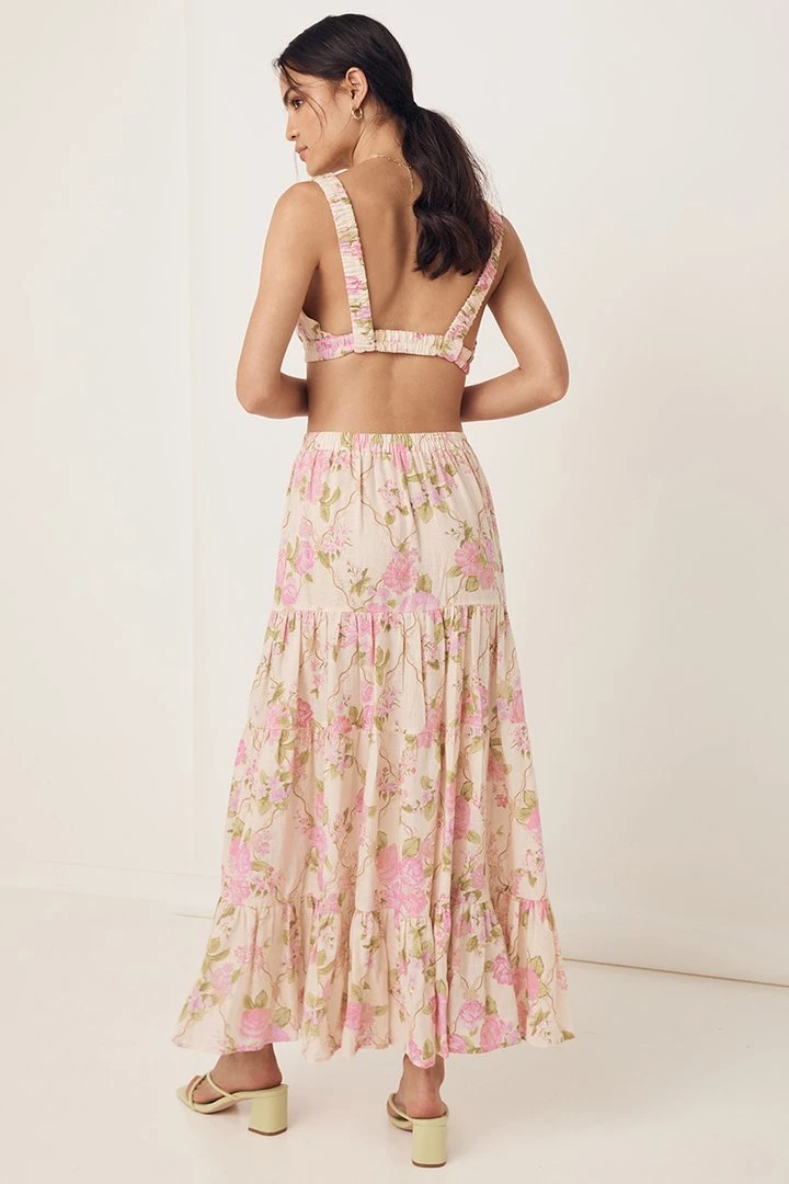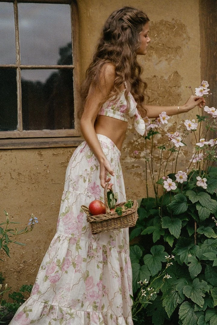 The dreamy Sundown Kerchief Skirt is crafted in 100% Organic Cotton and is lined for easy wear. With an eye catching curved hem, gathers throughout and a comfortable elastic waist finished with brass beads and tassels, we can’t get enough of this style. Pair with our Linda Blouse for an effortlessly amazing look.