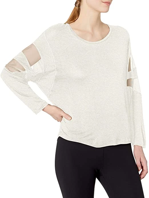 Feel comfortable and free in Maaji’s Waterfall Cemente long sleeve. This top features a relaxed fit and sheer mesh panels on the sleeves. Perfect to throw on top of your sports bra or tank, or as a layering piece.
