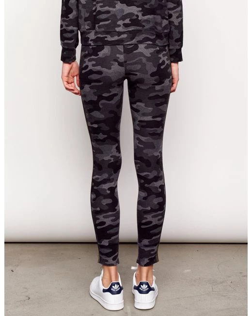 FITTED SWEATPANTS CUT IN A HEAVY TERRY FABRICATION. FEATURING AN ALL OVER CAMO PRINT AND ASYMMETRICAL STEM HEM.