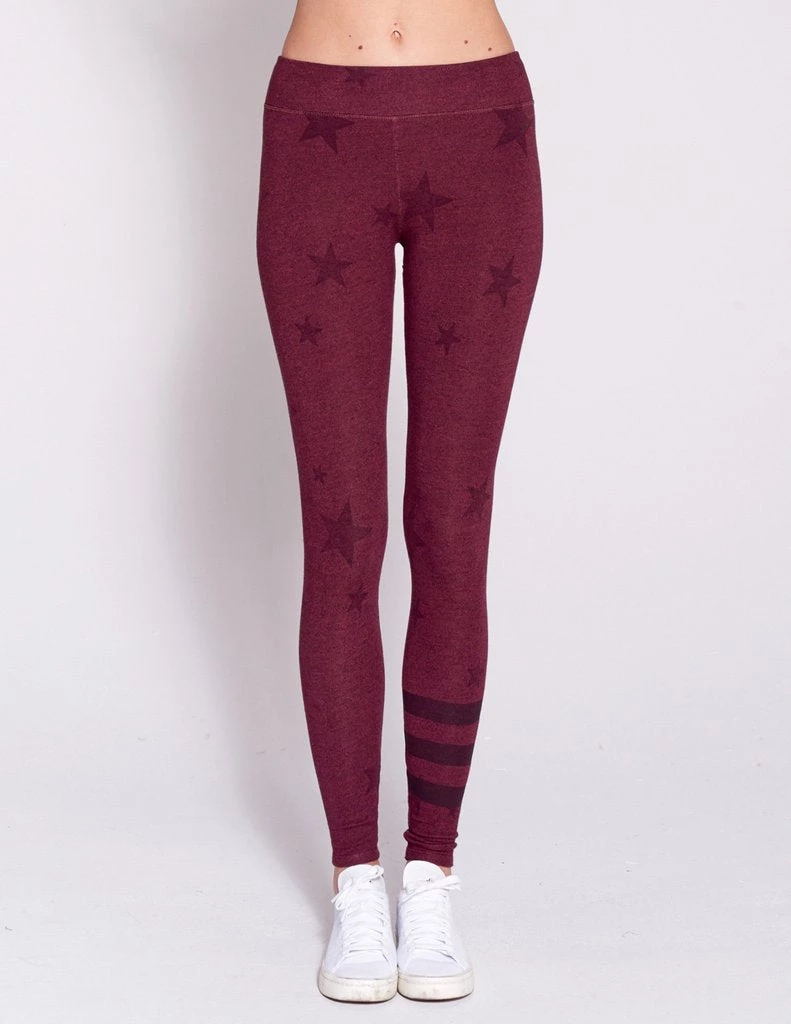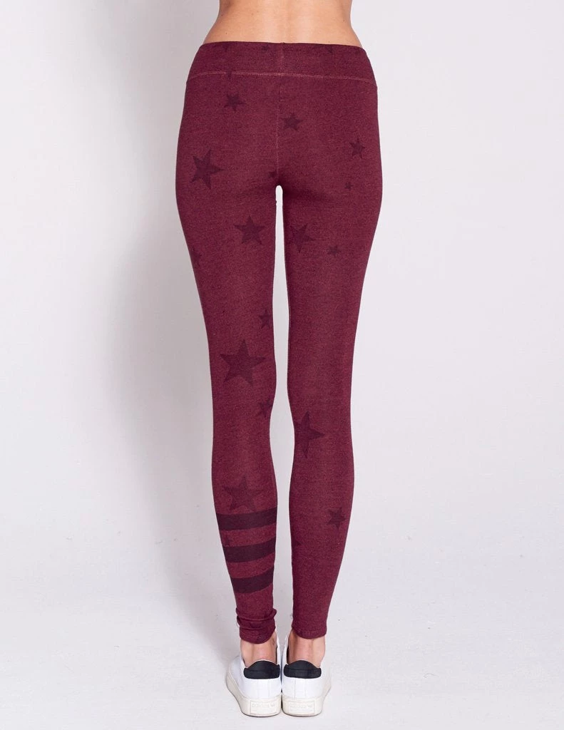 Sundry’s Stars & Stripes Yoga Pant is a slim fitting yoga pant in an ultra soft stretch fabrication. It features star graphics and stripe details. Graphics may crackle over time for a vintage effect.