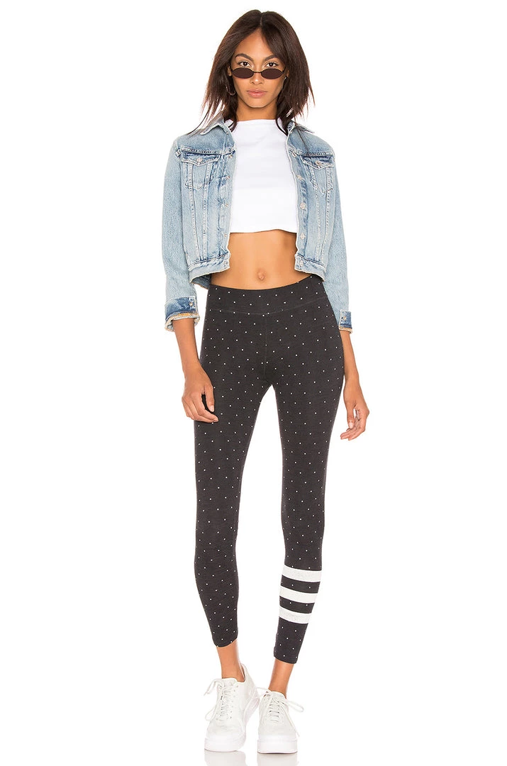 Sundry’s Stripe & Dots Yoga Pants are a super cute pair of leggings featuring stripes and dots in a crackbinder ink which when pulled apart creates a cracked/ weathered effect that creates a worn in vintage look. Ultra soft fabrication. So cute!