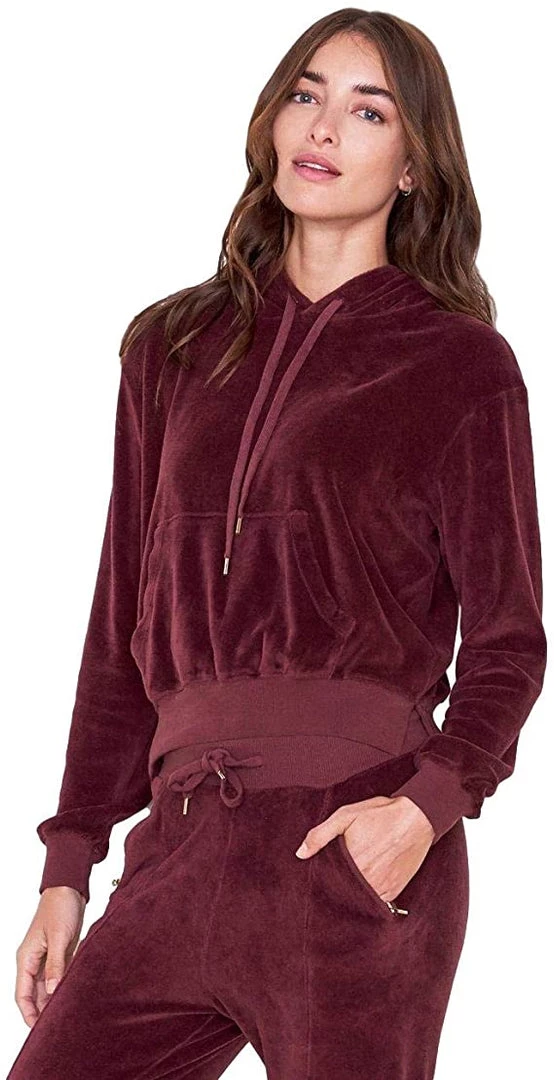 A velour hoodie cut in a soft, cotton fabrication. Featuring front muff pocket with side notches.