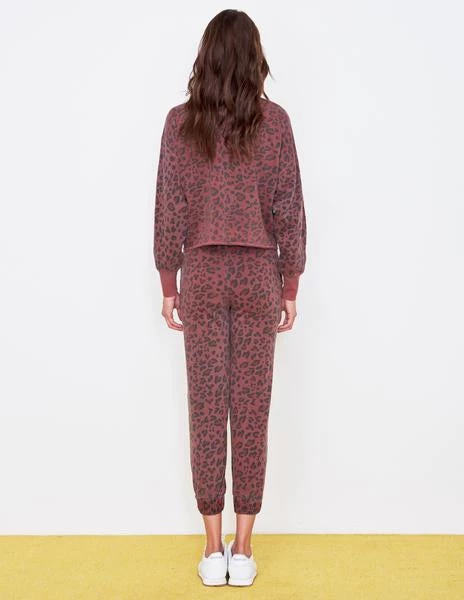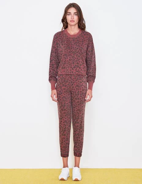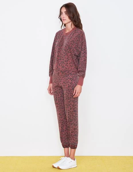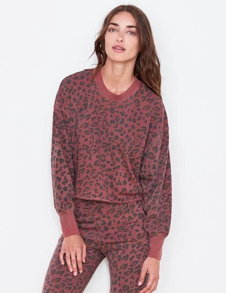 A drapey sweatshirt cut in a light fleece fabrication. Featuring raglan sleeves, a cropped silhouette and all over leopard print.