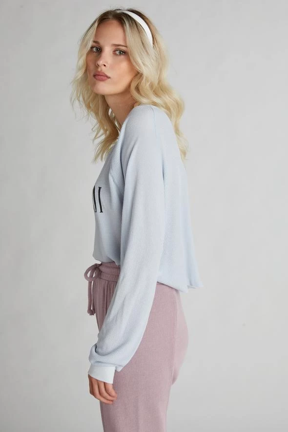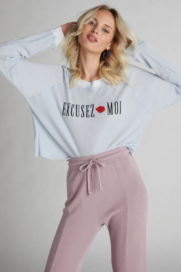 Excuze me? What did you say? The Monte Crop is a long sleeve crew neck with a slightly cropped fit and raw hem. In a lightweight soft thermal.