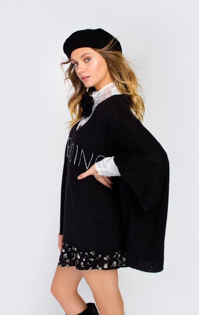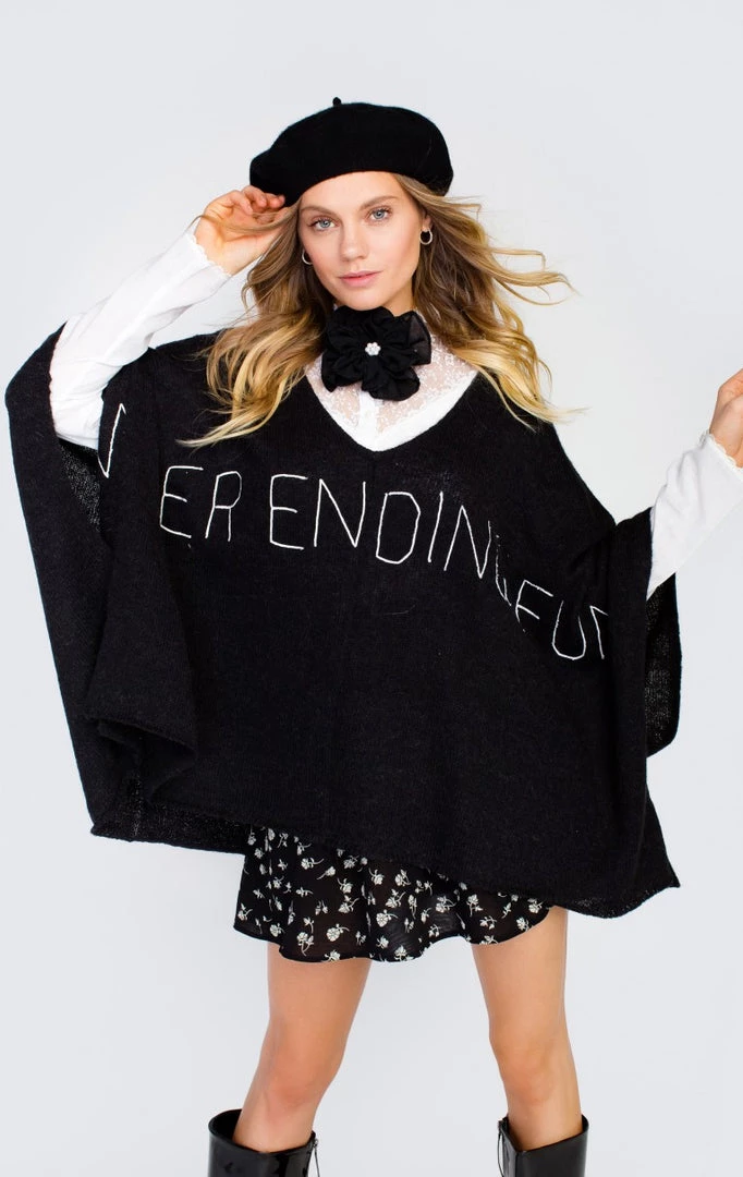 Girls just wanna have fun!!! And the Never Ending Fun Poncho by Wildfox is just that. This black poncho features “Never Ending Fun” across the entire length. It’s sure to keep you cozy and looking chic.