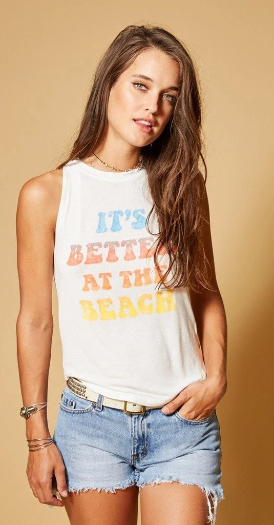 You’ll literally be that happy wearing this beach babe sleeveless tank!