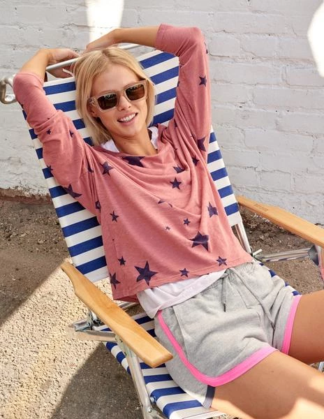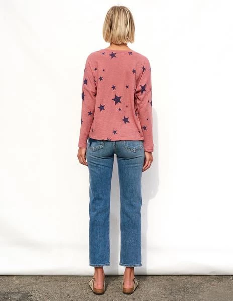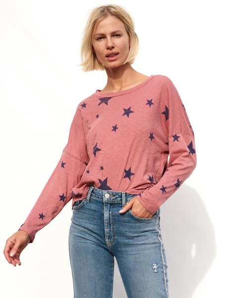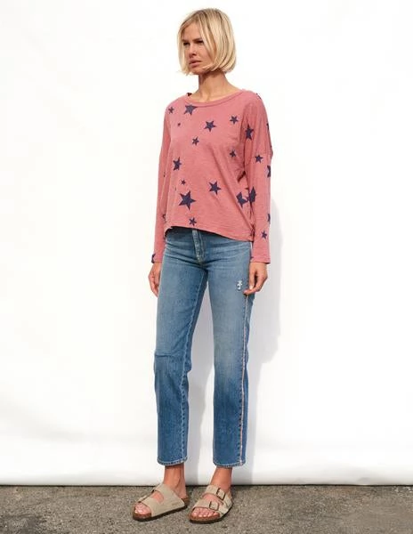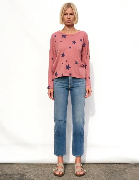 A LONGSLEEVE CREW NECK CUT TEE IN SLUB SUPIMA COTTON. FEATURING ALL OVER STARS, RAGLAN SLEEVES AND MULTI COLOR TRIM AT SLEEVES. 1