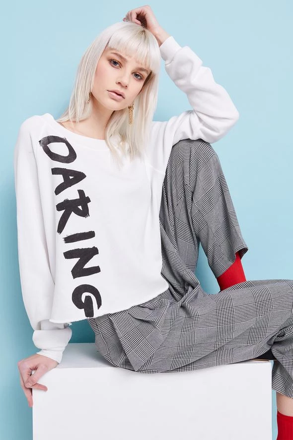 The Monte Crop is a long sleeve, crew neck sweatshirt with a slightly cropped fit and raw hem. In a light terry.