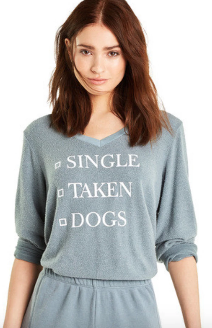 Currently two out of the three. The Dogs Baggy Beach V by Wildfox is a relaxed, slightly oversized pullover that hangs off the body perfectly. In a deliciously soft Vintage Varsity fabric.