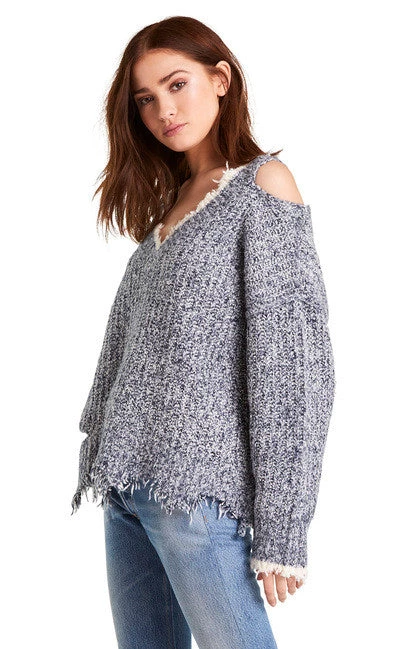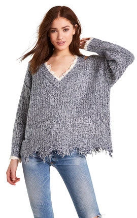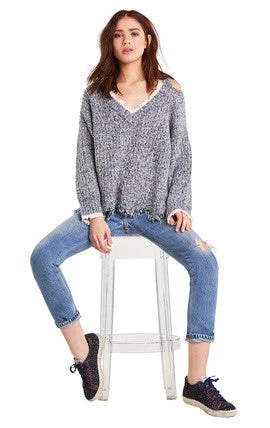 The Echo sweater by Wildfox is a v neck sweater with slit details and contrast tipping around the neck and cuffs. Made in a heirloom boucle yarn.
