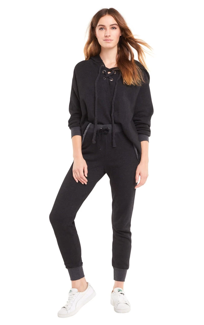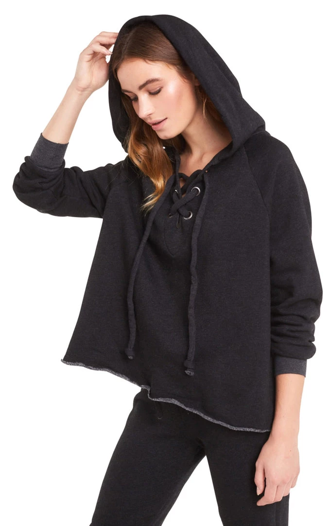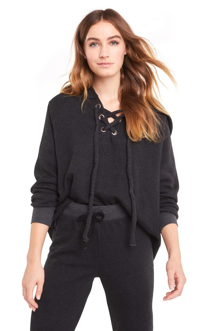 Don’t make it more complicated than it has to be! Wildfox girls love the simple things in life. That’s why we are bringing you their Essentials Hutton Sweater in a super soft Sherpa fleece. This sweatshirt features a comfy hood, a sultry front lace-up detail and a raw hem. No embroidered logo.