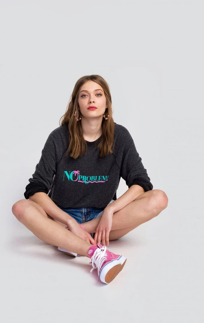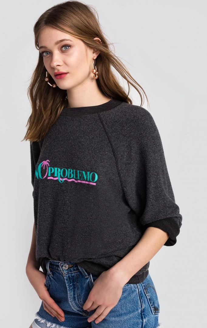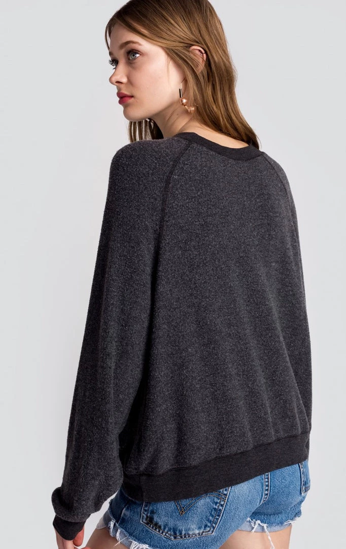 No problemo when there’s palm trees around. A vintage inspired, clem black, soft sherpa fleece sweater that features long sleeves, a crew neck and banded hems. Constructed from our deliciously soft Vintage Varsity fabric.